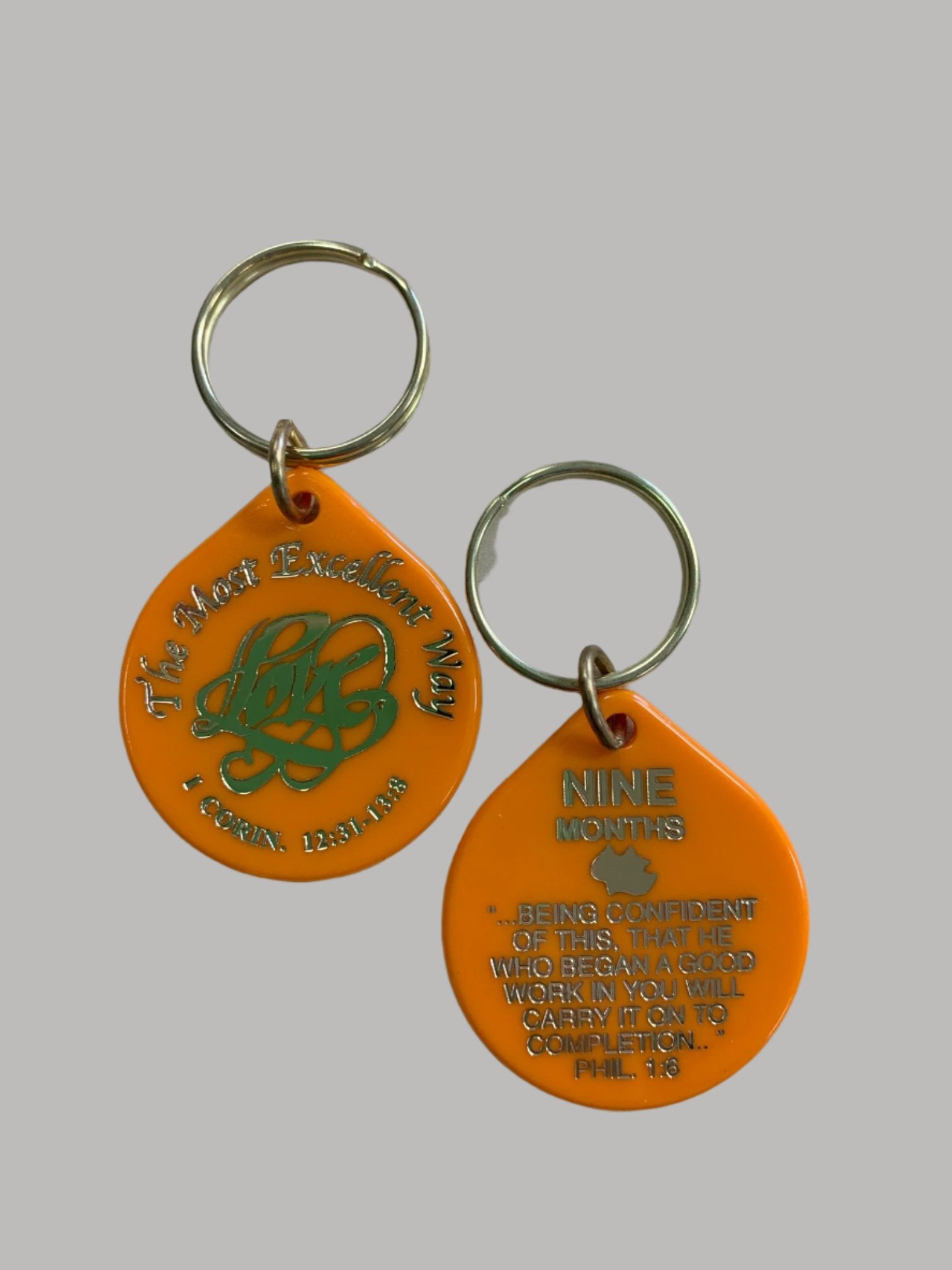 This is a small keychain given to celebrate Nine Months of sobriety.