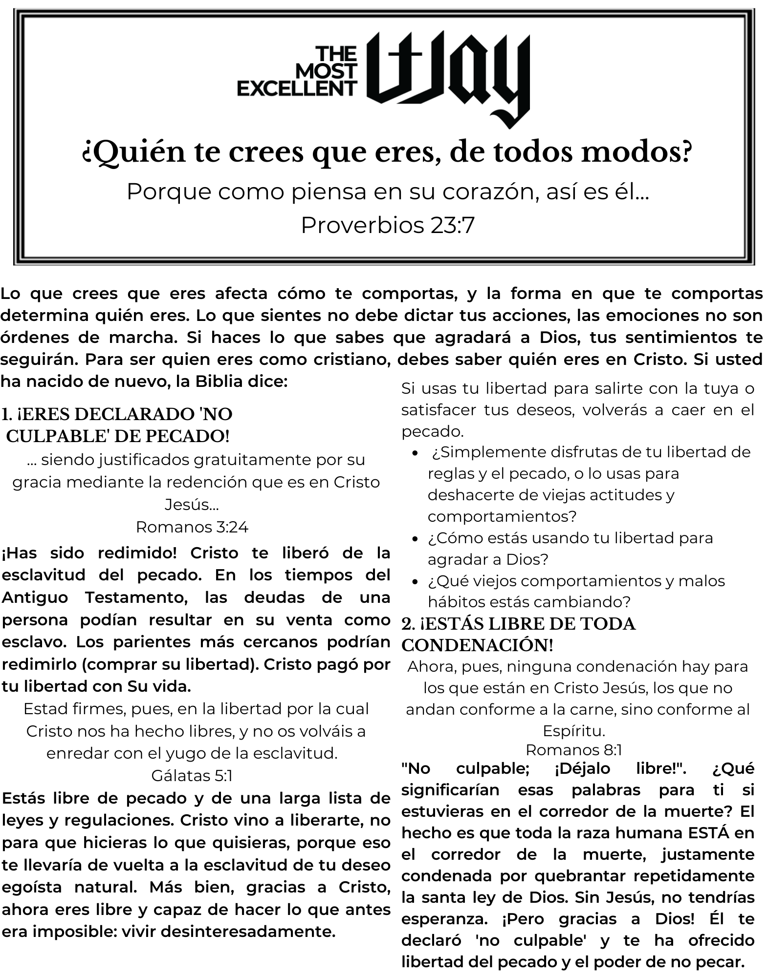 This booklet contains many more truth statements regarding who we are in Christ.