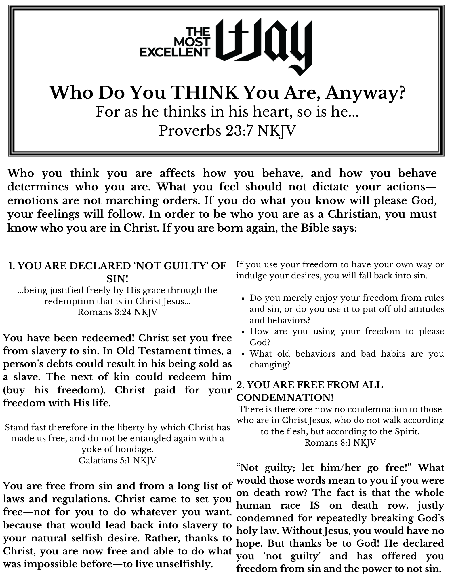 This booklet contains many more truth statements regarding who we are in Christ.